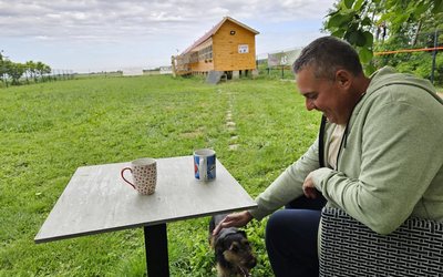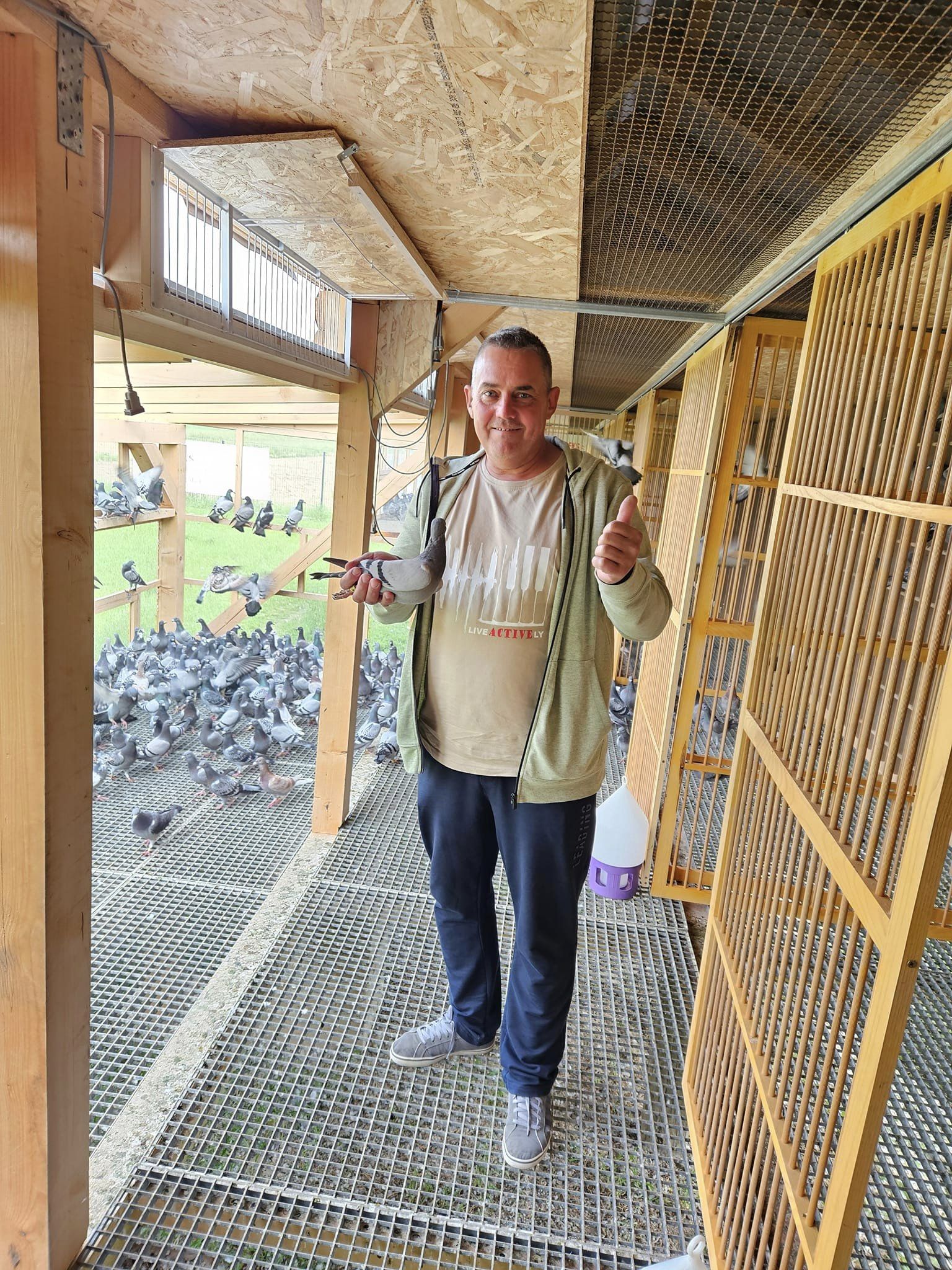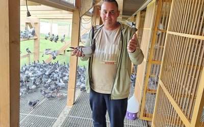 Delighted with our accommodation for the pigeons, reinforced with the best food for the youngsters, he leaves our camp and says he will be back right for the final!